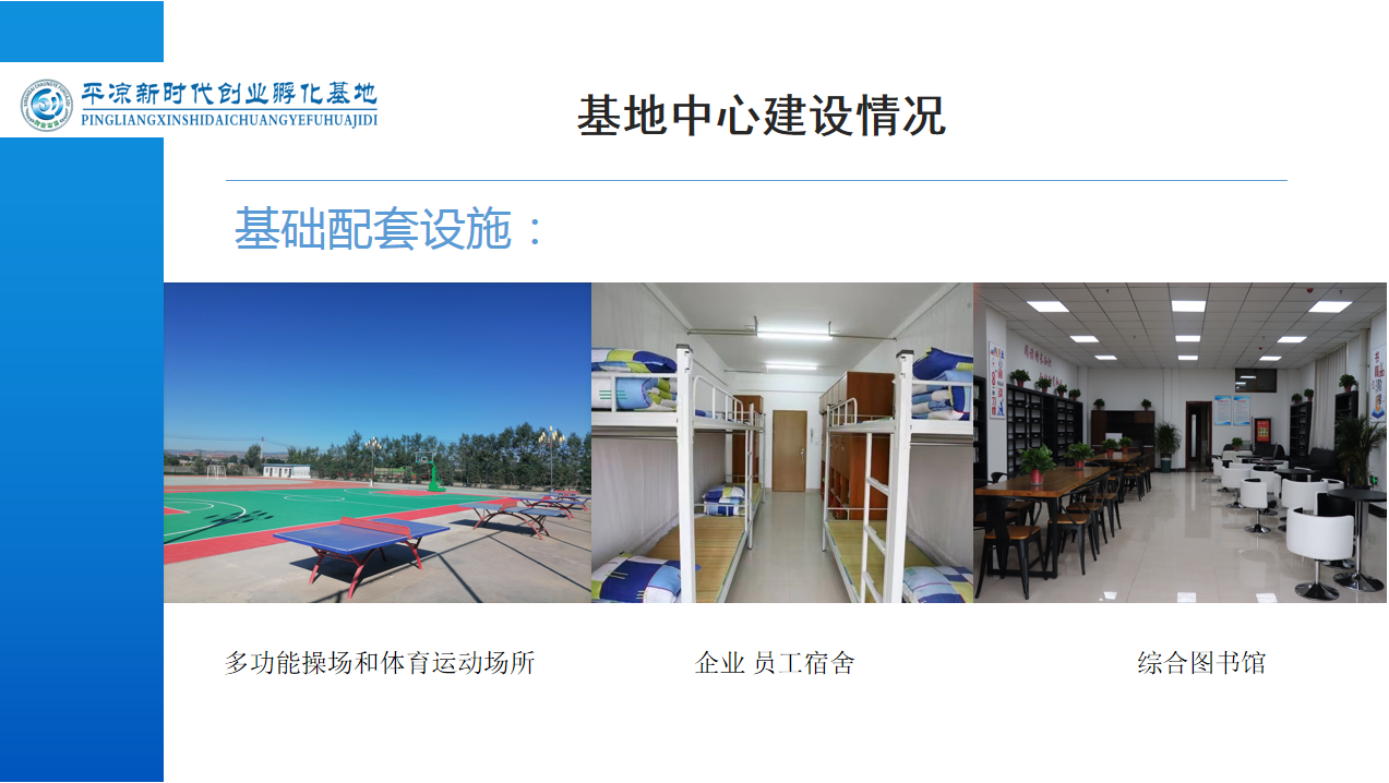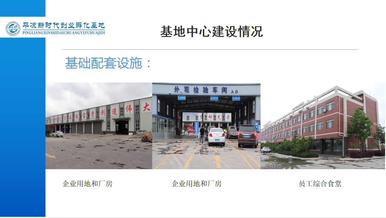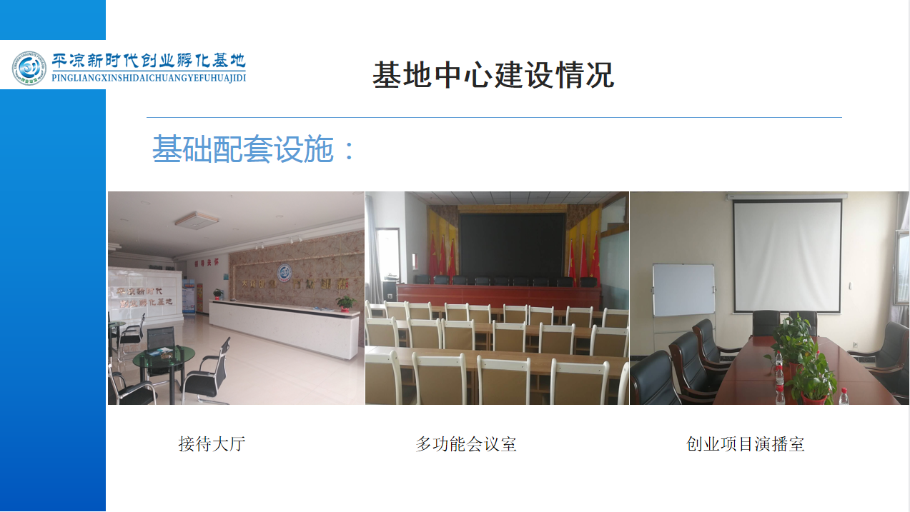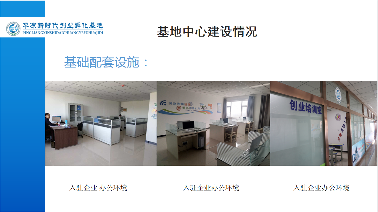 平凉新时代创业孵化基地有限公司成立于2018年1月地处工业园区七府北路 1 号,基地依托集团公司,可使用场地 60 亩,办公区域建筑面积3000平方米 ,楼下有2000平方米的停车场,可容纳创业实体 80 多家。基地按照国家孵化器十四五规划的目标要求,紧紧围绕“以人为本、扶持创业、促进就业”的服务宗旨,全面贯彻落实创业优惠政策,为创业者提供办公场所、创业辅导、信息服务、创业培训、市场营销、管理咨询、投融资服务、开业指导等服务,形成一体化的帮扶机制不断完善“一站式”综合服务平台,目前已成为大学生、农民工、退伍军人、大众创业的重要平台。